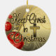 Fira det riktiga menande av jul med denna nätt "behållaKristus i jul" 2 sidminnessakprydnad. Elegantt guld, svart och rött virvlar runt bakgrund med prydnadar, och den tillfälliga köpfinare skrivar. Håll Kristus är jul!