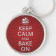 Håll lugn och baka på Keychain Rund Silverfärgad Nyckelring