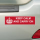Bildekalet med formulera "behållalugn och bär på" skriftligt på det med en kunglig krona.