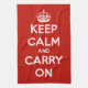 Håll lugn och bär på röd kökshandduk