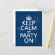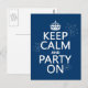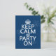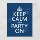 Det här står det "Keep Calm and Party On", i stil med den klassiska "keep calm"-affischen. Orden är dekorerade med gnistrar eller fyrverkerier. Det är en vacker och ljus design som passar utmärkt för diverse produkter för vilken fest som helst, vare sig det är födelsedag, jul, nyår eller när som helst.
