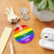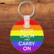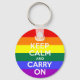 Håll lugn och fortsätt med vintage-stil-design mot en regnbåge.