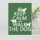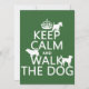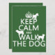 Denna är klassikerkrigaffischen "behållalugn och bär på" reworded "för att hålla lugn och gå hunden". Det finns silhouettes av hundar som står och sitter på och runt om ord. Designen gör underbarpresenter eller gåvor för hundägare/älskare, eller, som en tacka dig för hundkojor/vets/rädding centrerar och hundfotgängare.