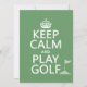 Detta är den traditionella affischen omformulerad till "Keep Calm and Play Golf". Underbara ord att leva efter! Det finns en liten flagga bredvid orden. Det är en populär design, älskad av golfare och golf-fans. Finns tillgänglig på en mängd olika produkter, den gör underbara presenter och gåvor till golfentusiaster.