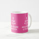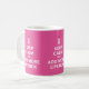 Håll lugn och tillfoga mer läppstiftkaffemugg. Du kan ändra bakgrundsfärg- och muggstil, ta bort eller justera bilder. Det finns 3 bilder med röd spets per muggen!