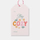 Håll dig Mysigt Rand-anpassningsbarnas meddelande och namn-presentens familjs märkre. Få redo att fira julhelgen i stil! I designen visas oväntad jul-färg - rosa, teal-grönt, gyllene gult och koral, och budskapet att förbli mysigt! Oavsett om du är värd för en mysigt sammankomst med vänner eller en familj firande, så kommer dessa pulserande märkre och för roligt att ge julhelgen värme och glädje.