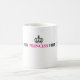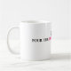 Keramisk mugg för enkel vit med text. Diskarekassaskåp.