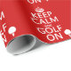 Denna är affischen för klassikerbehållalugn reworded "för att hålla lugn och Golf på". Det finns en silhouette av en golfboll på en utslagsplats bredvid breven. Det är en slå design som är populär med alla som älskar golf. Tillgängligt på en lång räcka av produkter, från handdukar till lagringsburkar, att resa märkre. Den gör underbara gåvor för golfare och golffläktar.