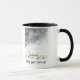 En vitringermugg med ett svart handtag och kant och en akvarellmålning av en gås som slåss till och med en storm, beklär och drar tillbaka. En idealgåva för någon som går till och med hård tid. Se också att matcha hälsningkortet och andra gåvor.