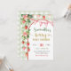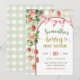Hallå inbjudan till födelsedagsfirande med jordgubbs-tema, Rosa Gingham-båge födelsedagsinbjudan, Sagegrön Gingham 1-års inbjudan