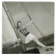 Markerar hållande rigging för ung kvinna på yachten, (B&W) | George | AssetID: 57539324