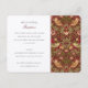 Denna bröllopsreceptionskort är en storslagen fortsättning på motivet "Strawberry Thief", som inbjuder gästerna att fortsätta firandet med middag och dans. De intrikata detaljerna i William Morris design, med stiliserade fåglar och frukter bland lövverk, skapar en praktfull ram som inbegriper den kommande receptionens rikedom. Tryckt på kvalitets papper, ger de varma nyanserna av rött, grönt och brunt en festlig och välkomnande atmosfär. Kortet kombinerar elegant den Arts and Crafts-rörelsens elegans med den glada känslan av ett bröllop, vilket säkerställer att gästerna ivrigt ser fram emot festligheterna.