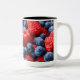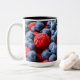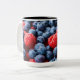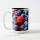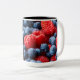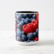 Denna utformning ger en närliggande bild av hallon och blåbär, som är smakrika och näringsrika frukter. Hallonbär är röda och blåbär är, som namn antyder, blå. Uppmuntra sunda kostvanor eller uppskatta skönheten hos de naturliga frukterna med denna attraktiva och funktionella design!