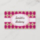 Hallon och grädde argyle ger detta visitkort en retro stil. Anpassa kortet efter dina behov, lägg till eller ta bort information osv... Använd dessa visitkort för ett företag, godisaffär, butik, bageri, stylist, chokladbutik, boutique, dagis, förskola, lärare, stylist, lärare, barnomsorg, kosmetolog, sminkartist, designer, salong, frisersalong, spa, boutique, etc...