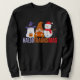 Ett spöke, en gnom, och en snögubbe firar julhelgen med Hallothanksmas-tröjan.