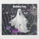 Halloween-humör med spöke, fladdermus, lila pumpkin, spindelnät. Anpassadets text. Öl flaska-etikett.