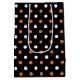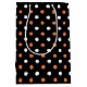 En svart, orange och vit prickad Halloween-presentväska som du kan anpassa med din egen text.