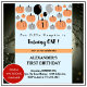 Halloween 1-års födelsedagsinbjudningar oktober för barn : Denna Halloween 1-års födelsedagsinbjudan i blå och orange med dessa söta pumpor längst fram och pumpen, löv mönster på baksidan (höst höststämning), är för baby pojke / för barn.