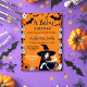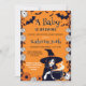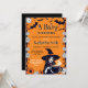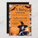 Halloween söt häxa med en bryggande kruka baby shower mall inbjudan direkt nedladdning. Söt häxa med en bryggande kruka fladdermöss groovy tusenskönor orange och svart tema