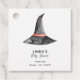 Den rena halloween-temat babyduschfavärde-taggen med vattenfärgshäxans hatt. Kristine Lee illustrerar vattenfärgen. Mer information finns på www.kristineleedesigns.com