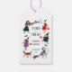 En söt presentetikett för Halloween med en söt barn- och djurkostymparad