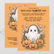 Denna inbjudan från Halloween fest omfattar en söt och glad tecknad stil, med ett vänligt spöke bredvid tre leende pumpor. Spöket har ett lekfullt uttryck, strålande värme och roligt, medan de tre pumporna var och en har stora, vänskapliga leenden som ökar den ljusa atmosfären. Omringning av spöket och pumpor är små daisy, spridd leksak runt scenen, vilket ger en viskfull beröring till Halloween-designen. Bakgrunden är en vibrerande orange som anger perfektens ton för en roligt och en festlig Halloween-händelse. Den ljusa orangen kontrasterar vackert med spökets vita och pumpornas pulserande orange, och skapar att tecknen står ut. Daisyn lägger till ett sött och oväntat inslag till Halloween-temat, skapar designen att bli frisk och bjuder in. Längst upp på framsidan står det i texten: "Du är inbjuden till ett HALLOWEEN Bash!" Texten är skriven med ett lekfullt teckensnitt tecknad-stil som kompletterar det söta temat och popparna mot orangens bakgrund. Under bildtexten finns det utrymme för information om anpassadet, t.ex. datum, tidpunkt och plats för party, vilket gör det enkelt att anpassa sig. Baksidan av inbjudan fortsätter med samma bakgrund för orangen och ger extra utrymme för ytterligare text eller anteckningar. Detta utrymme kan användas för att inkludera ytterligare detaljer som "Costumes Welcome!" eller "Gå med oss för en natt av roligt och behandling!" Den här designen är perfekt för en ljusare och glatt Halloween firande, som blandar söta, vänskapliga tecken med ett smart, festligt färg-schema.