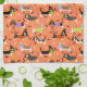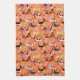 Cute Basset Hound hundar med brun, svart, vit och citron jackar bära häxhattar och Halloween-konformationer med spridda fladdermöss, tass och hund ben.