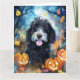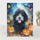 Halloween Bernedoodle Med Pumpalig Skrämmande Kort