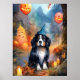 Halloween Bernese Mountain med pumpor Scary Poster