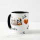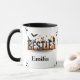 Cute Halloween-eget namn mugg för vänner. Konstruktionen har texten "Besties" i svart och orange motif-stil typografi med orange, gult och svart Halloween inslag. Gör det till den bästa personligen för din bästa vän. Perfekt för att få dem att känna sig speciella, öka deras förtroende och få en unik och löjeväckande gåva! Vi har till och med sweatshirts, nyckelkedjor och skjortor med samma utformning i vår samling. Kolla in det. Happy halloween!