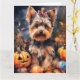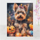 Halloween Biewer Terrier Med Pumpa Skräck Kort