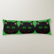 Den här fantastisk-kudden har en svart katt med spetsig öron, skarp grönt öga och en slugt röd flin. Denna läskiga kattunge är perfekt för Halloween eller för kattälskare.
