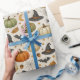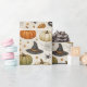 A warm, classic Halloween pattern with a charming farmhouse and cottage feel. Hand-painted pumpkins in soft ivory, sage green, and muted pumpkin orange are scattered among graceful black cats with glowing green eyes, weathered witches’ hats, fluttering bats, crescent moons, spiderwebs, acorns, falling leaves, and tiny golden stars. Set against a creamy linen-textured background, the design feels cozy, nostalgic, and autumnal rather than spooky.