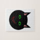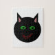 Det här fantastisk-pusslet har en svart katt med spetsig öron, skarp grönt ögon och en slugt röd flin. Denna läskiga kattunge är perfekt för Halloween eller för kattälskare.