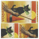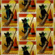Vintage Halloween-hälsningskort som visar en svart katt, häxbroom och hatt med texten "Friendly Fairy Witch eller Fay, fyll önskningen du önskar i dag".
