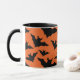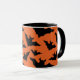 Coola, roligt och unika Halloween-presentkaffet mugg för vem som helst. Halloween, svartflygande fladdermus-spooky silhouette helgdag mönster. Hallow Kväll flock av svart fladdermus. Du kan anpassa orange färg.