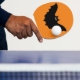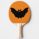 Ping Pong Paddle som är utskriven med Halloween Black Fladdermus-teckningsbilden av TheFabricSeal på Zazzle.com är en söt och enkel illustration av svart fladdermus på konstfiguren teckning silhouette stil med peekaboo peering khaki grönt och pumpkin orange ögon tittar ut för vänner och ber likadant och en coola mörk Halloween night of äventyr, goblins, ghouls och and. bus eller godis godis.