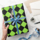 Halloween Black Grönt Checker Birthday Anpassnings Presentpapper