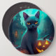 Halloween Blue Cat with Pumpkins Scary Knapp