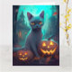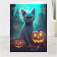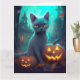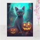 Halloween Blue Cat with Pumpkins Scary Kort