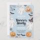 Halloween Blue Fourever Spooky 4e födelsedagen bjuder in Cute Halloween till pojkens fyraårsinbjudan med tre spöken, pumpor, fladdermus, godis, kakor och mycket annat på blå bakgrund. Den här Halloween-pojkens inbjudan till 4e födelsedagen är perfekt för en födelsedagsfest i oktober.