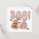 Boo! Halloween Boo-perfekt för alla som firar Halloween-säsongen har rosa text som läser BOO och har en pumpa, häxhatt, jack o lantern, spindelnät och fladdermus!