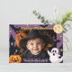 Ge dig på leenden och skämt med Boo Crew Bash Card - din biljett är hemlighetsfull Halloween hälsning. Framsida och centrum: din lilla pumpa (eller fullt-odlad ghoul) i ett personlig-foto, omgiven av fladdermus, spöken, jack-o’-cuteness, och ett hemsökt hus som är mer charmerande än kylning. Lägg till två anpassningsbar linjer för att skapa en egen stavning - vare sig det är "Witchin" You a Happy halloween eller "Från Ghoul Gang vid 13 Spooky Lane." Vänd över och baksidan ger ännu mer magi: ett meddelande om anpassade som gör att du kan köra, gnugga eller gå till fullt ghostwriter. Perfekt till familjer som vill skicka boo-tiful cuddles, spooky kärlek, eller bara skryta om hur söt deras baby ser ut i en häxhatt. Oavsett om du skickar det till mormor, din kugn av vänner eller grannen som ge lämnar fullt-storleka godis pub, så är det här kortet ett skrik. Anpassa den, lägg den och förbered för en ström av "OMG" och "EEK!"s.