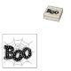 Get ready for the spooky season with this charming "Boo" spider web rubber stamp. Featuring a playful, decorative font and a classic cobweb backdrop, this stamp is the perfect tool for adding a festive touch to all your Halloween DIY projects.