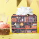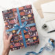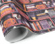 Halloween-hölje pappert med ett mönster med en spooky-bokhylla, jack-o'-lyktor och fladdermus. Perfekt för inslagning av party favors eller födelsedagskalkyl i oktober. Originalteckningar efter Marketa Stengl.