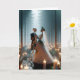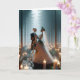 Skeletoner, klädda som en brud- och groomddans på hög träd i en skog fylld med glansljus