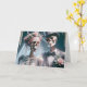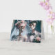 En skelettbrud och -groom är klädd i bröllop, med bruden i blommor och en slöja och brudgummen i top hat och bukslips