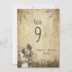 Halloween Bröllopsbord nummer kort med Skelett Par, Spindelnät, och kyrkogård över en gammal pappersbakgrund. När du ändrar numret ändras det automatiskt på baksidan. Du måste lägga till varje nummerkort en efter en i din varukorg. Detta matchar en samling i min butik.