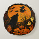 Halloween Broom Flying Witch and Moon Rund Kudde