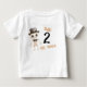 Halloween-temad t-shirt för pojkar som fyller 2 år med en skelett som bär cylinderhatt och fluga samt lite text. Denna Halloween-t-shirt för 2-årsdag har också skelettbilden på baksidan och är perfekt för en pojkes Halloween-fest på 2-årsdagen.
